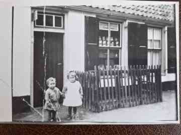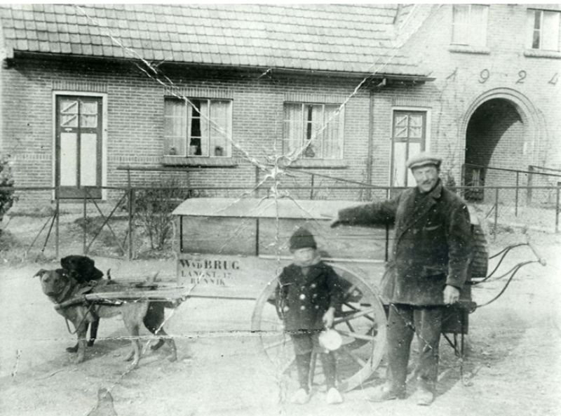 Willem en Herman met hondenkar voor de oude huisjes 1924 (Provincialeweg)