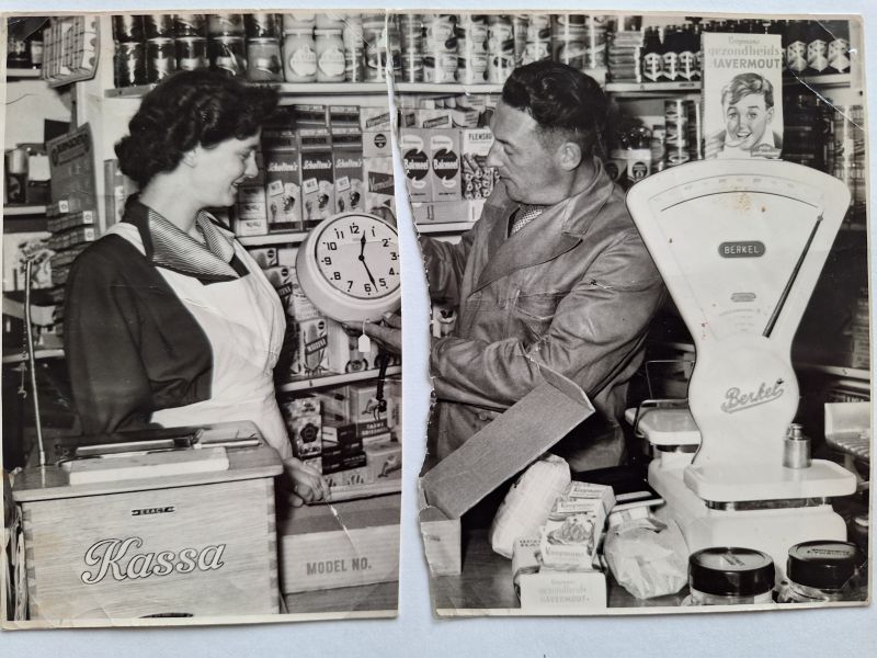 In de kruidenierswinkel aan de Provincialeweg te Bunnik jaren 50